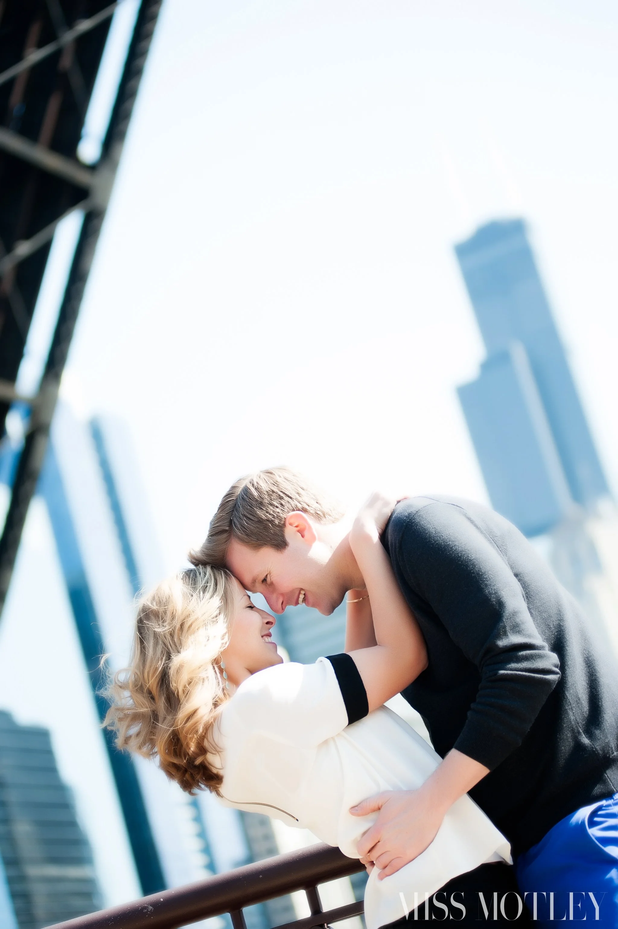 It’s not every day you meet someone bold enough to wear bright blue pants; so I must admit, I was a little nervous when Grant & Jenna strolled into Starbucks to meet for their engagement session. However, after the first few clicks of my camera, and a couple of fun jokes in between, we were fast friends. We started our shoot on the Franklin Street Bridge, downtown Chicago then decided to take a stroll over to the, ever so popular, Kinzie Street Bridge for a few shots where these two soon decided that it was time to pull out their cool shades! Lol. I don’t think either of them could have chosen a cuter companion as they both complement each other so well. Jenna’s reserved personality is the perfect match to Grant’s cool hair-slicking persona. And together, they are complete-- a perfect match. I am so looking forward to their wedding at West Baden Springs Hotel on the French Lick Resort in Indiana. I know it's gonna have a blast!